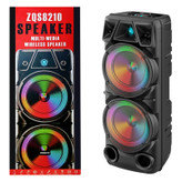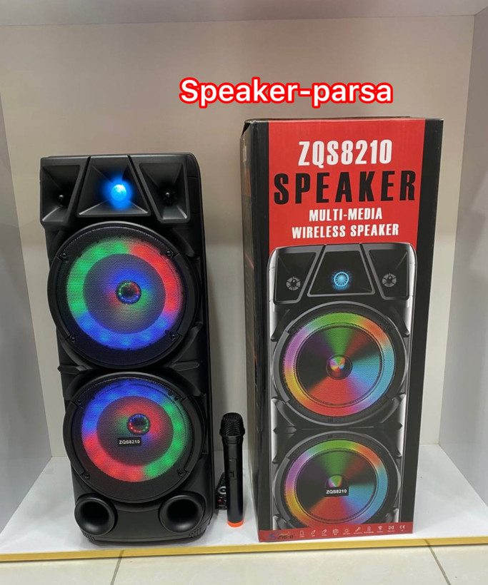 پس از سالها تجربه و تولید محصولات مختلف اینبار شاهد شاهکار بی نظیر شرکت ZQS مدل معروف ZQS 8210 هستیم.این اسپیکر در سال 2022 به عنوان پر فروش ترین محصول این شرکت در کشور ایران برگزیده شد.8210 یک اسپیکر با دو بلندگوی 8 اینچی و یک تیوتر یک اینچی میباشد که قادر به صدایی بسیار بلند و با کیفیت با حجم 4000 هزار وات اسمی می باشد.طراحی ظاهری این اسپیکر بسیار زیبا و ارگونمی می باشد که به راحتی قابلیت حمل و جابجایی را دارد.باتری درون این اسپیکر از ظرفیت بسیار بالای 4500 میلی آمپر برخوردار است که توانایی روشن نگه داشتن این اسپیکر را به مدت حداکثر 6 ساعت دارد.در قسمت فوقانی این محصول پنل کنترل کننده بسیار حرفه ای دیده می شود.همچنین در قسمت پشتی این محصول جایگاهی تعبیه شده که میتوانید با قرار دادن میکروفن بیسیم در آن از گم شدن یا اسیب دیدن میکروفن جلوگیری کنید.یر روی میکروفن این محصول کلید های کم و زیاد کردن و تغییر صدای خواننده(بچه/زن/ پیر مرد) وجود دارد.رقص نور این محصول نیز دارای قابلیت تغییر و خاموش کردن می باشد.در کل 8210 یکی از بهترین گزینه ها ی خرید برای انتخاب یک اسپیکر برای داخل و خارج از منزل می باشد.