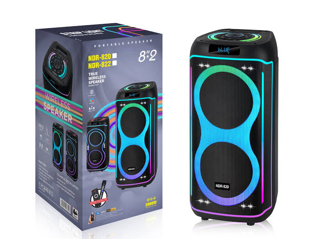 اسپیکر بلوتوثی شارژی دابل ۸ اینچ رقص نور دار مدل NDR1097